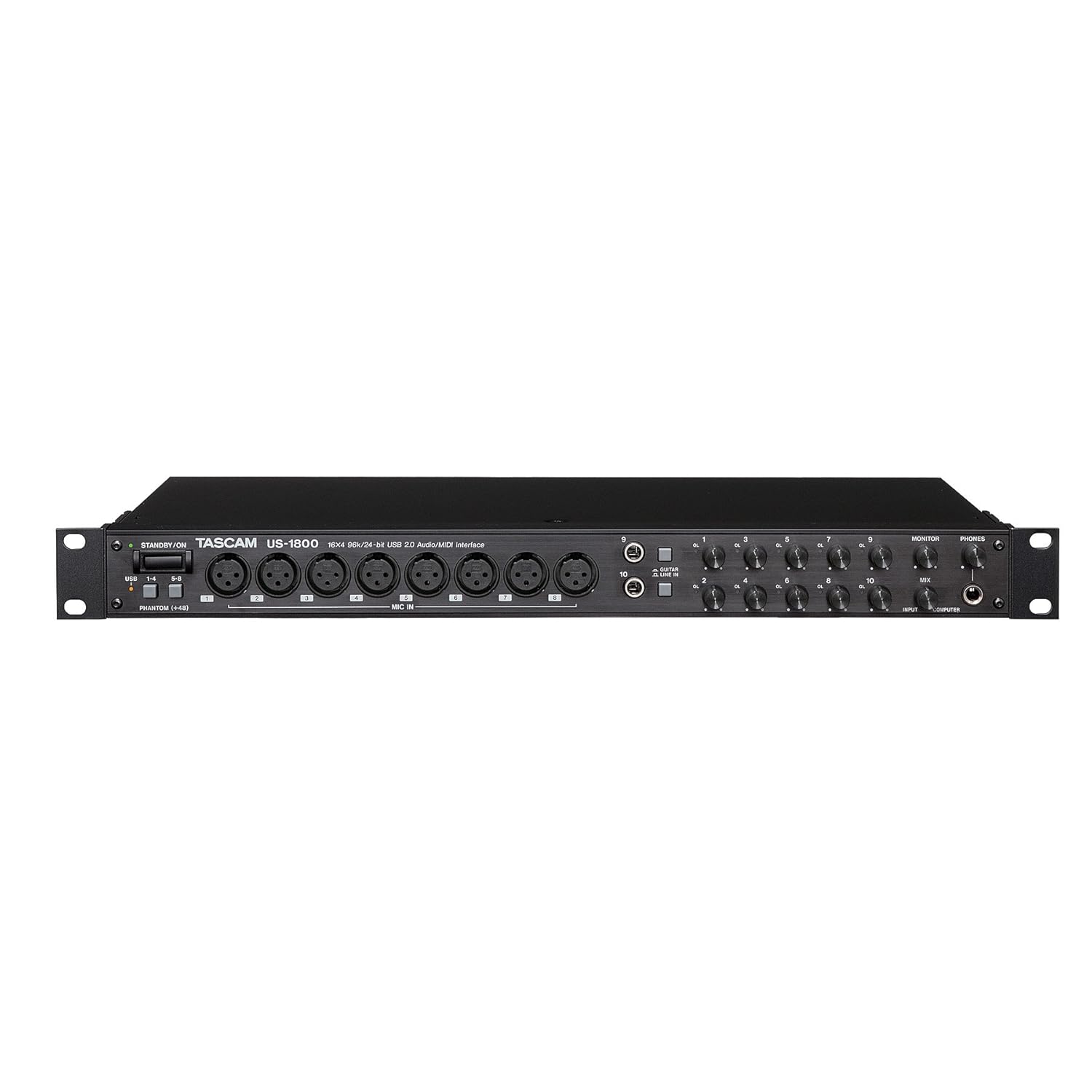 XLR 6 is the Bass, 7&8 are vocals, and input #9 is 1/4" for guitar. Input #10 can be used for the second guitar when we have it. There are also the 6 additional 1/4" balanced inputs in the back. We use 2 of the 1/4" outputs to run into the mixer and out to headphones and our studio monitors.